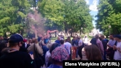 Полиция задержала активиста, который зажег файер и приковал себя наручниками к ограде у здания суда в Петербурге, где 22 июня будет вынесен приговор по делу о создании террористического сообщества "Сеть", передает корреспондент Север.Реалии.