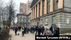 В Петербурге около здания бывшего ВНИИБ целлюлозно-бумажной промышленности собралось более 30 человек, которые протестую против сноса строения, сообщает корреспондент Север.Реалии. Вокруг здания установили новый забор, огородивший дворовую часть здания. Люди предполагают, что новый собственник - московская ГК ФСК "Лидер" - мог сделать это для ухудшения состояния ВНИИБ и его последующего сноса.
