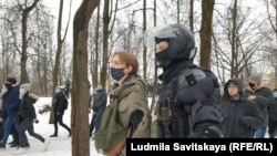 Сотрудники полиции пытались задержать одного мужчину, который кричал, что может выходить на акцию по 31 статье Конституции. Но митингующие отбили его. Сразу же после митинга в штабе Навального задержали его координатора Елизавету Бычкову и активиста штаба Ольгу Кузнецову.