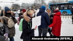 В Архангельске во время акции задержали активистку, сообщает корреспондент сайта Север.Реалии. На протестную акцию на площадь Ленина пришли около 500 человек.