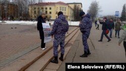 Жительница Сыктывкара Елена Гулина 3 апреля вышла на одиночный пикет в поддержку учителя из Микуни Никиты Тушканова, который был уволен после критических постов о местной школе в инстаграме, сообщает корреспондент Север.Реалии.