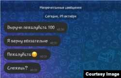 Контрактник Николай разместил свою анкету в группе "Своих не бросаем!", и ему сразу написала Настя. После небольшого диалога она спросила, есть ли у него Сбербанк. И попросила перевести сначала 300, а потом 500 рублей. "На суши не хватает. Суши закажу". "Одна настойчивая дама писала. Сначала на еду просила, потом в долг", – рассказал Илья. "Родной, помоги пожалуйста. 200 рублей выручи до пятницы. Я тебе отдам, клянусь", – причитает женский голос на аудиозаписи. "Выручи, пожалуйста. 100. Я верну обязательно. Пожалуйста. Сможешь?" – долго не сдавалась она.