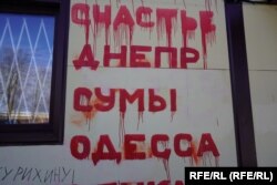 Арендаторы магазина, по словам Татьяны, к Дмитрию относятся тепло. Свои надписи он делает на той части здания, где магазинов нет.