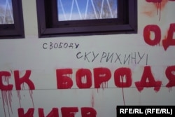 В Русско-Высоцком фамилию Скурихина знают все: и чиновники администрации, и обычные люди. После обысков и задержания в сентябре, по словам Татьяны, многие звонили и выражали поддержку ее мужу, предлагали помощь. Теперь на стенах магазина, который Дмитрий расписывал в поддержку политзаключенных, стали появляться надписи в его поддержку. Их пишут неизвестные для семьи люди, часто ночью. Например, не так давно на фасаде кто-то маркером написал: "Скурин не виновен".